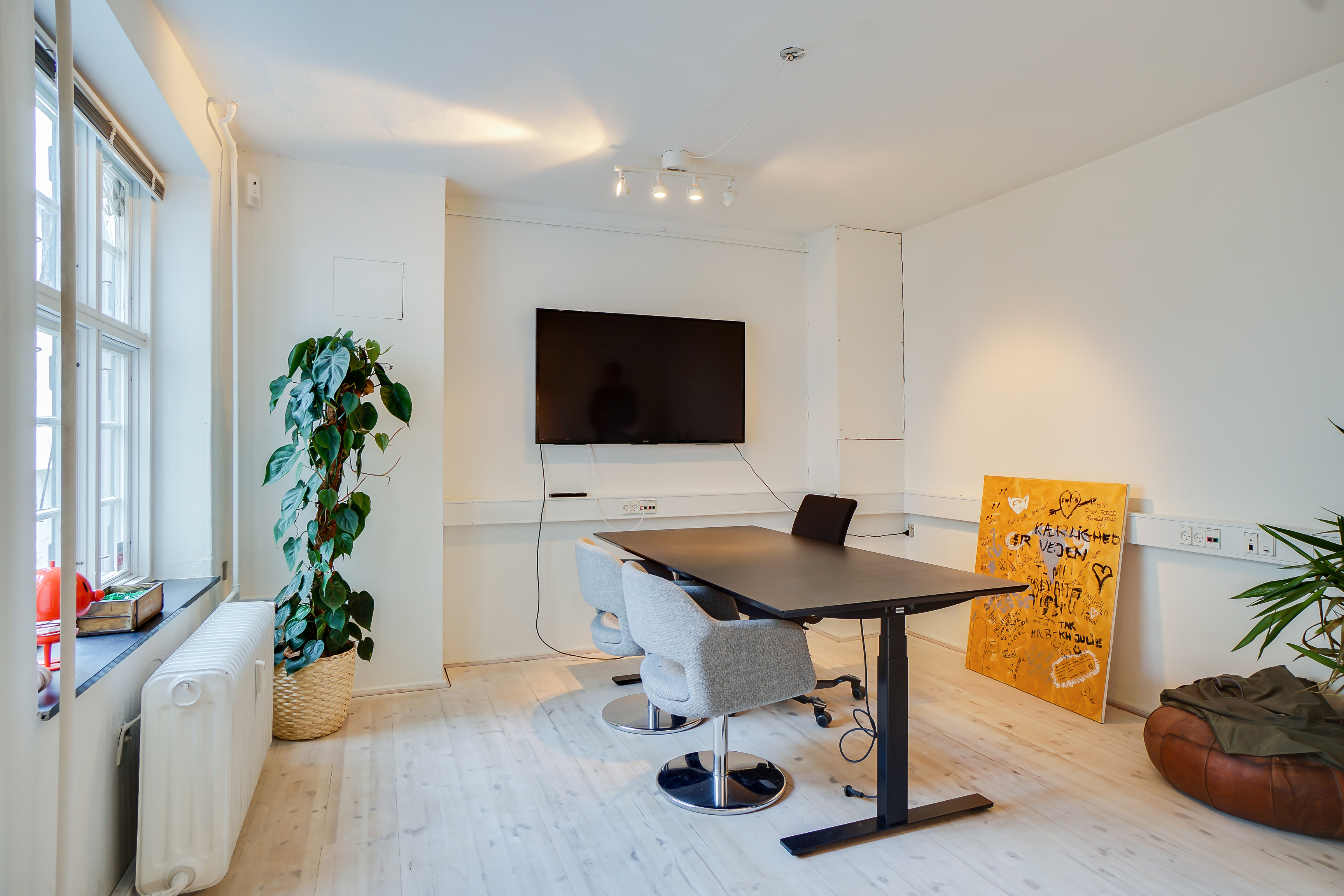 Lejemålet, som ligger i forhuset, er indrettet med 2 kontorer / mødelokaler, et storrumskontor, spisekøkken og toilet.